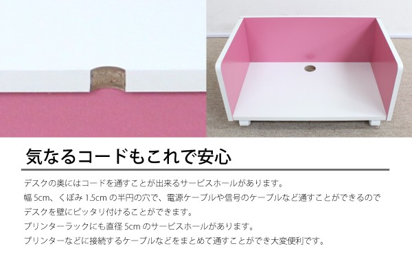 ■デスク奥とラックには、配線を通すことができるサービスホールが付きます。