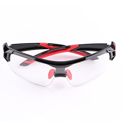 -. Feature : Material: PC explosion-proof lenses + Water resistant rubber + PC Plastic Frame. / Photochromic Lenses: The lenses will adjust its color shade according to the light(Sunny/Cloudy/Night). / 100% UV 400 Protection: Better to protect your eyes. / Wide Application: Perfect for Cycling, Running, Driving, Fishing, Mountain climbing, Golf Baseball playing etc.