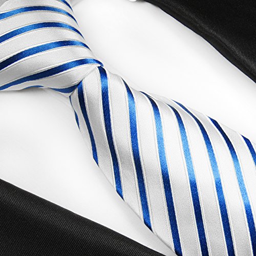Paul Malone Silk Men's Tie, Blue and White Stripes