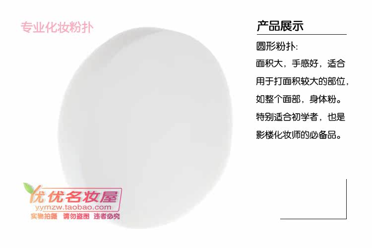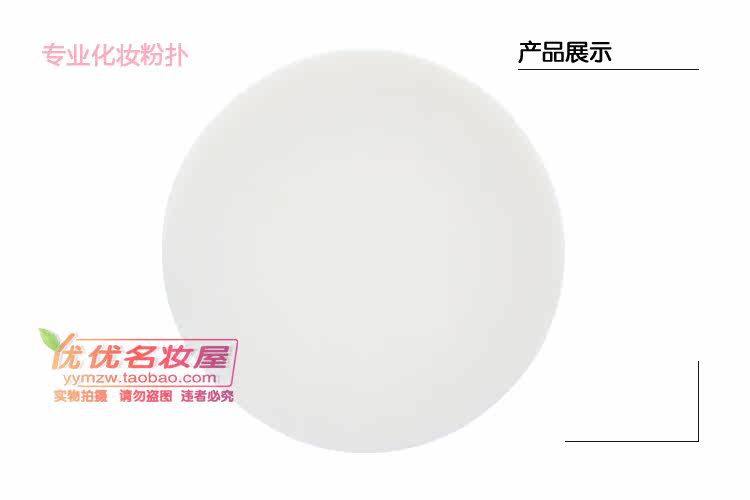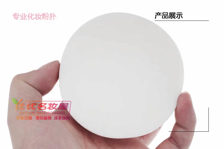 新到影楼专用高品质圆形大粉扑,质地柔软,可干湿两用。是日常化妆必备的工具。
