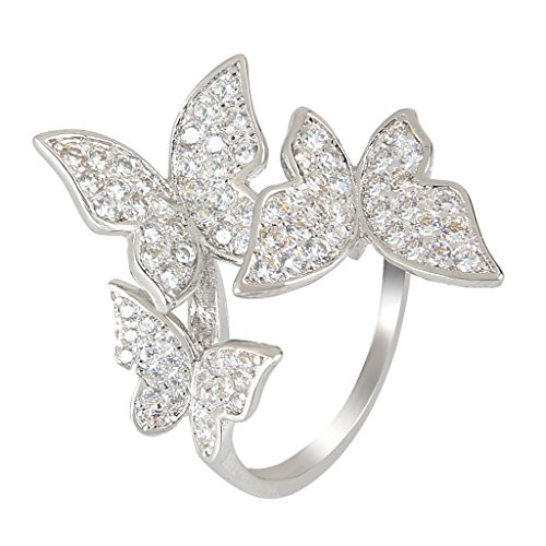 -. Title : [エレクイーン]EleQueen シルバートーン 微に嵌める キュービックジルコニア 三匹 美しいバタフライ 蝶 ブライダル 派手な リング サイズ 14 クリア [並行輸入品]