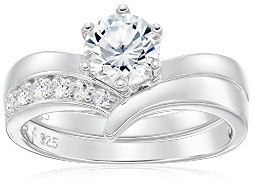 -. Title : プラチナメッキ925スターリングシルバーAAAキュービックジルコニアラウンドソリティアリングwith Chevronバンドリングセット