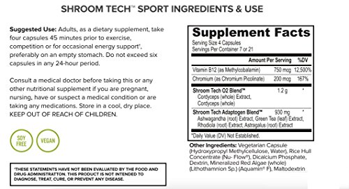 INCREASE CARDIOVASCULAR ENDURANCE NATURALLY. Shroom TECH provides cellular energy through the production of ATP rather than purely stimulant-based energy. Cordyceps Sinensis Mushroom has been shown to increase endurance, resistance to fatigue, and improve oxygen utilization by as much as 50% in multiple clinical studies, enabling you to go longer, recover faster, and set a new personal best. Increase energy and speed metabolism without the side effects or dependency of other supplements.