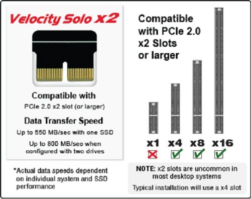 The Velocity Solo x2 utilizes a Marvel 9182 chipset and is bootable in both PC and Mac systems.