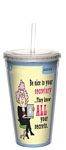 Tree-Free Greetings 16-Ounce Cool Cup with Reusable Straw, Aunty Acid Nice To Secretary (CC98560)