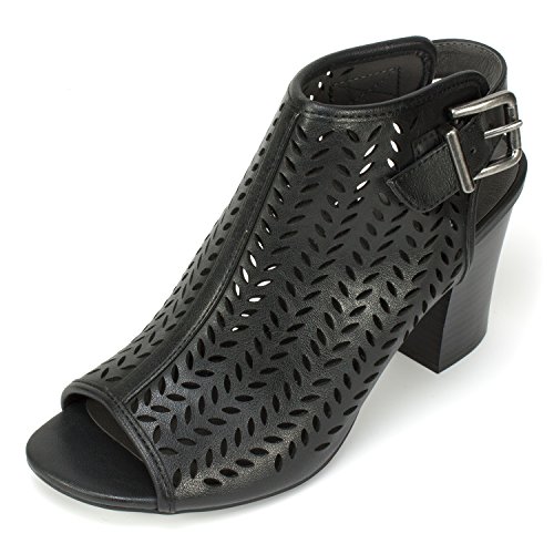 Product DescriptionUpfront sandal with lazer chop outs and comfortable backstrap. 3 inch block heel is super comfy.0