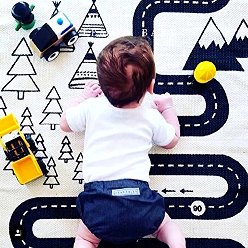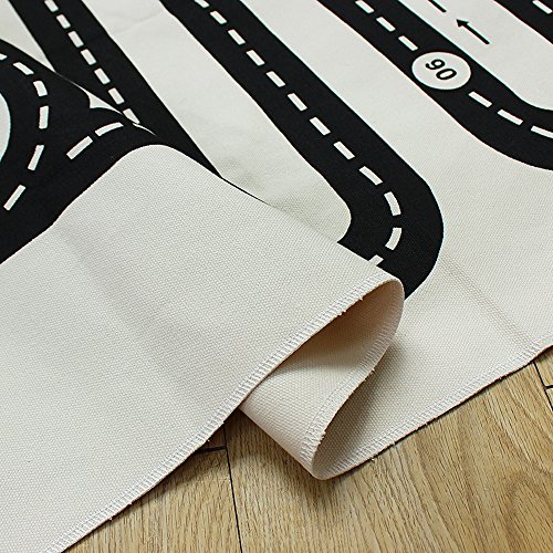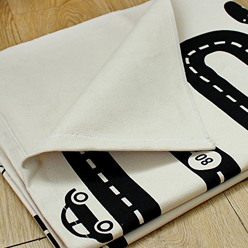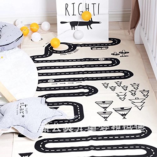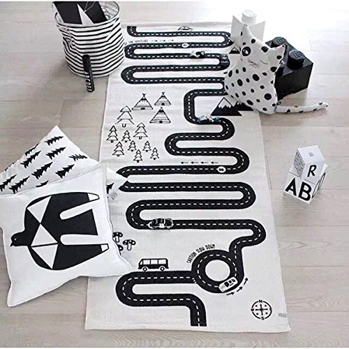 Product Description: A cool little game carpet named "adventure carpet" The carpet is handmade white with black printing, Painted a curved road scene, woven through the mountains Ring Road tent forest car. Winter to do not have to worry about bear children sitting on the floor.