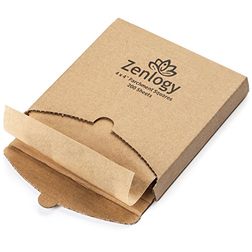 Precut squares for Your Convenience These natural brown unbleached parchment paper sheets are perfect for separating hamburgers and cookies and other creations. No more having to deal with trying to cut the exact size from parchment paper. Eliminate wasting extra paper from parchment rolls. You may find that other parchment sheets will not provide the exact fit that ours do. Multiple Uses and Versatile From delicate cookies to sticky caramel buns, every baked item slips right off the parchment paper sheets. They can be used for baking besides storing. Non-Toxic The parchment sheets are environmentally friendly and are unbleached. They are better for your health and also more pliable than the white wax paper. Zenlogy's parchment is coated with non toxic vegetable silicone to make them greaseproof. Easy Storage Comes in a perforated box so you can pull out sheets as needed while storing them securely. 0