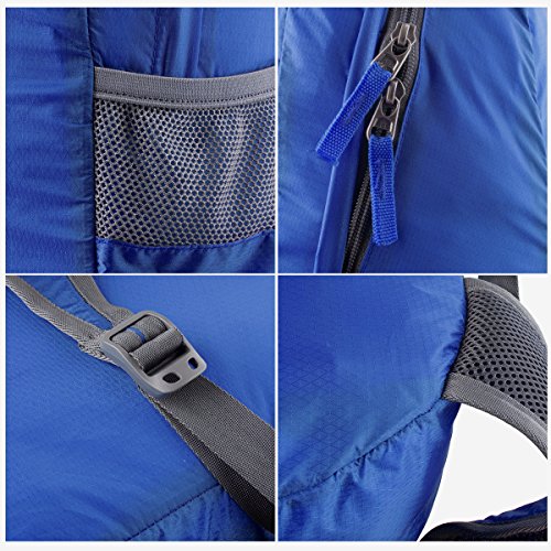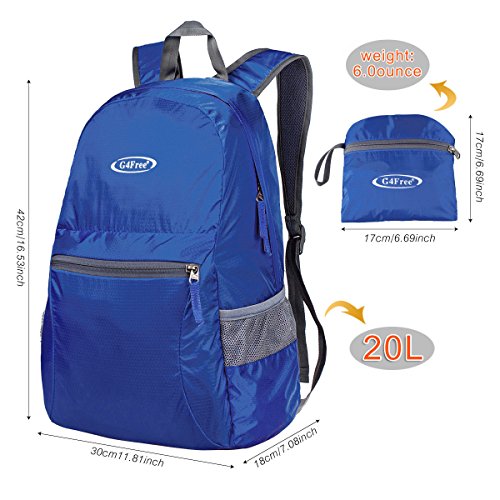 The G4Free packable backpack is made of high quality water and tear resistant nylon material, with abrasion resistant SBS metal zipper and reinforced more than 14 places with rope process. Like a sandwich size after being folded, easy to carry,convenient and practical. It fits into an ultra-compact pouch, so you can easily pack it in your suitcase for use at their destination as an extra bag for the trip. This compact, lightweight backpack is the perfect companion when you are out and about. It will be a fantastic necessity for no matter outdoor sports or leisure activities in or out of the city.Perfect for day trips,vacation,travel,day hikes,school,camping and shopping,etc.
