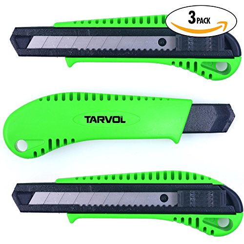 Box Cutter Utility Knife (3 PACK) - Premium Grade Strength - Retractable Snap Off Blades - Perfect Hobby Knife for Cutting Cardboard, Boxes, and More!