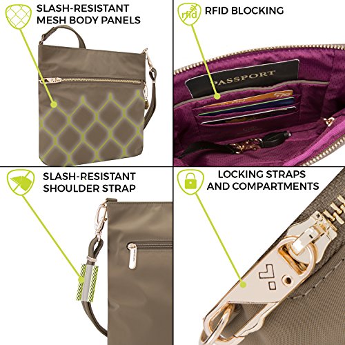 The North/South Slim Bag has lots of compartments to keep your items organized and easy to find. This bag features an open top wallet pocket, a zip wall pocket, and a locking front pocket. The roomy main compartment locks for security and has RFID blocking technology to prevent unauthorized access to your information. The slash-resistant adjustable strap can be secured to a stationary object to prevent a grab and go.Feature