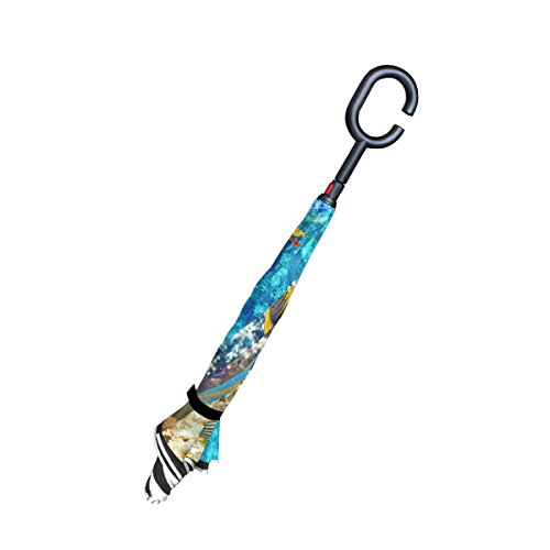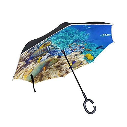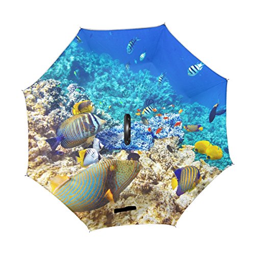 (CoolPrintAll)/Accessories/Umbrellas/DIRECT FROM USA/Underwater World Corals Fish Double Layer Windproof, Waterproof Auto Open Reverse Folding Upsid...