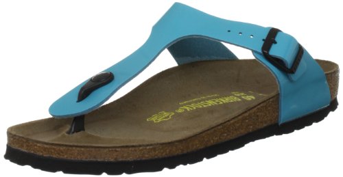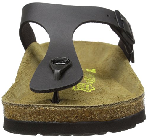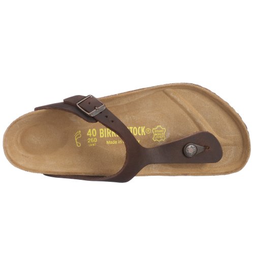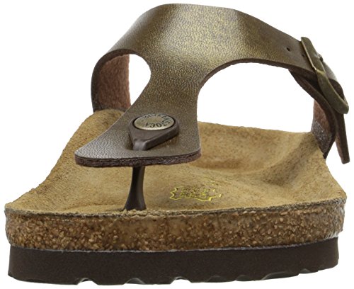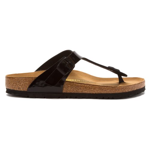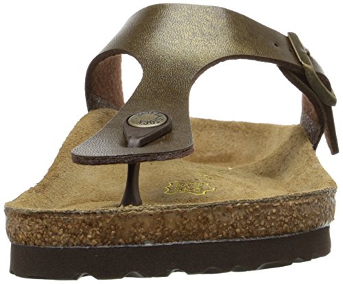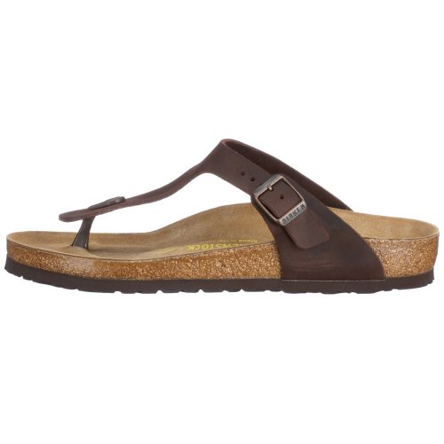 Thong sandal featuring rubber toe post with logoed medallion and adjustable vamp strap with buckle closure
