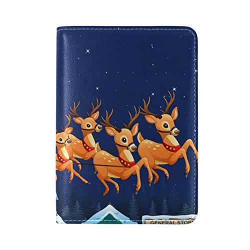 (La Random)/Accessories/Wallets, Money Key Organizers/DIRECT FROM USA/La Random Santa Claus Riding Reindeer Sleigh Flying Passport Holder Cover Leather Travel Passpo...