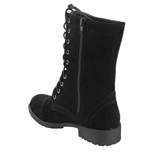 Product Description Refresh Footwear Women's round toe military combat boot features vegan-friendly suede throughout with non skid rubber sole. Adjustable lace-up front is secure. Imported. 0