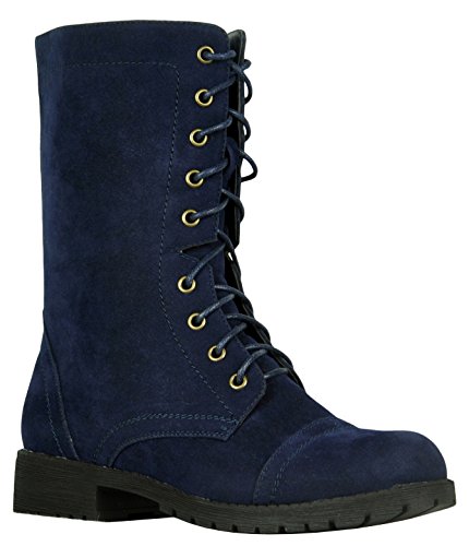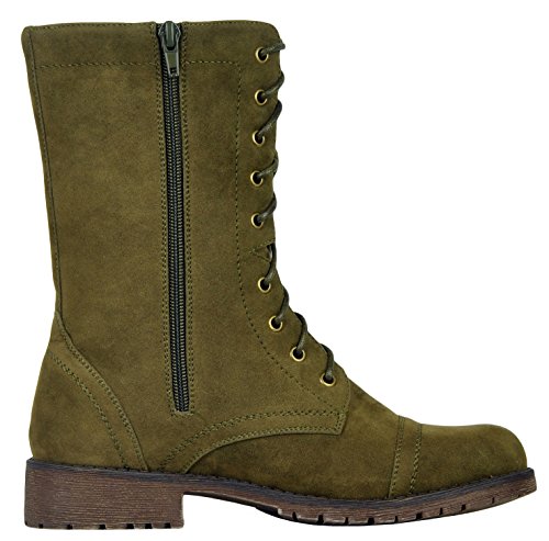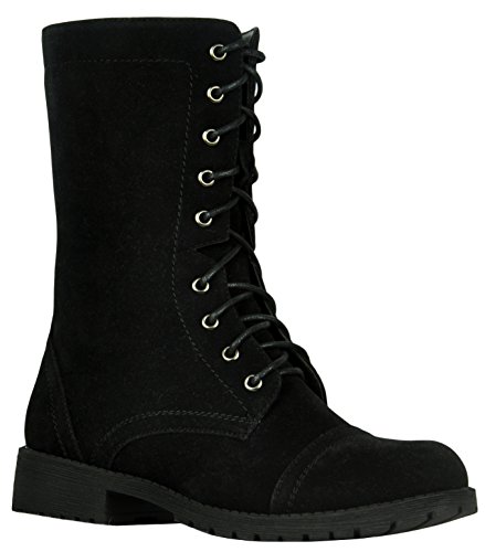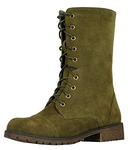 Refresh Footwear Women's Lace Up Military Combat Mid Calf Boot