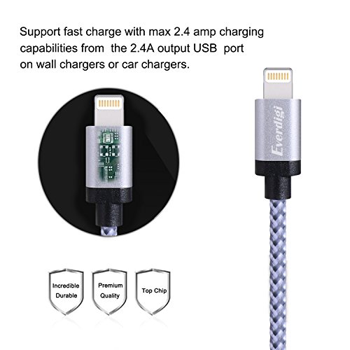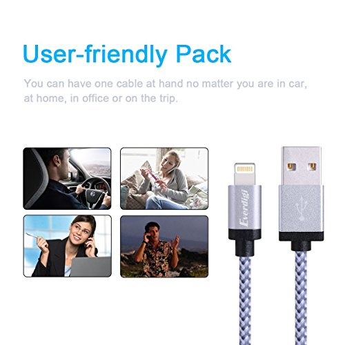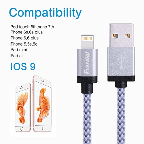 High Quality Nylon Fiber Cloth: Instead of plastics or Polycarbonate sheathing, this EverDigi lightning cord features a novelty high tensile nylon construction. The nylon fiber cloth is wound tightly around the cord to withstand day-to-day wear and tear, and at the same time keep flexible and tangle-free.