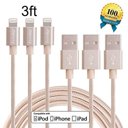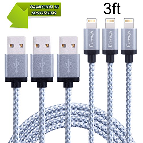 EverDigi 3 Pack 3FT iPhone Lightning Charging Cable Cord Nylon Braided 8pin to USB Charge and Sync Cable for iPhone SE/6/6s/6 plus/6s plus,5c/5s/5,iPad Air/Mini,iPod Nano/Touch, Compatible with Ios9
