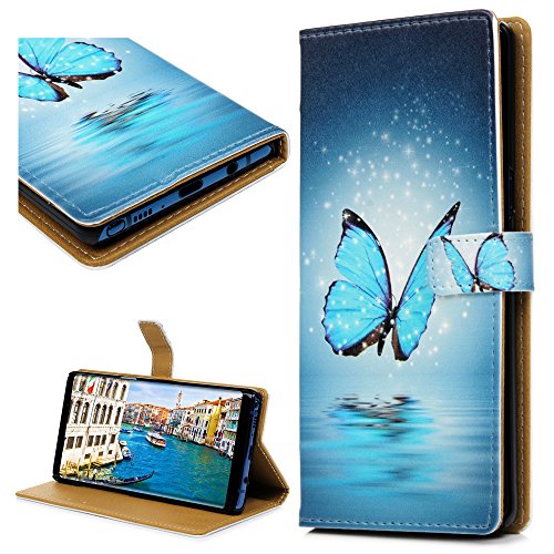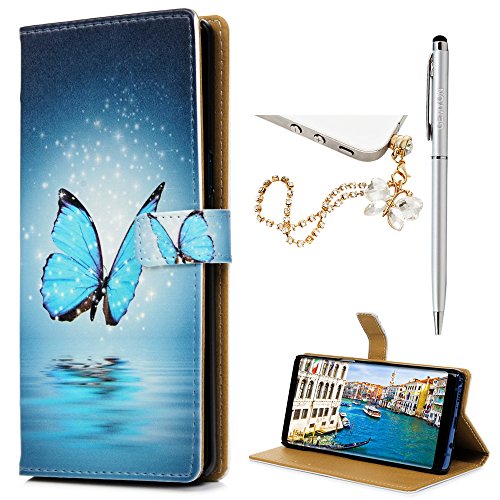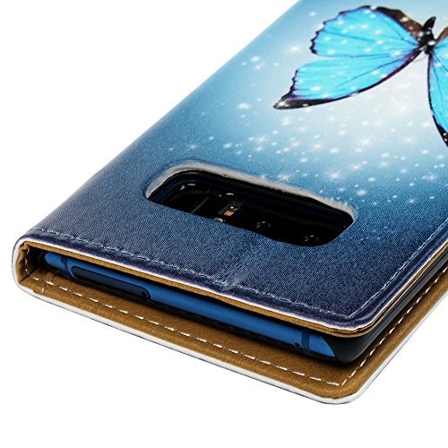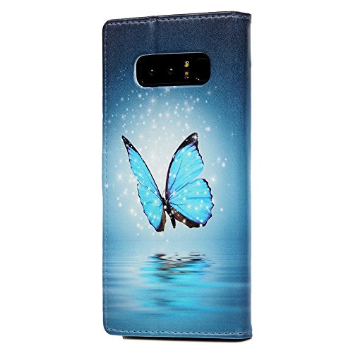 Galaxy Note 8 Case, Printed Pattern Butterfly Magnetic Flip Full Protective Wallet Case for Women, Premium PU Leather with Kickstand Card Holder Wrist Strap TPU Inner Cover with Dust Plug & Pen