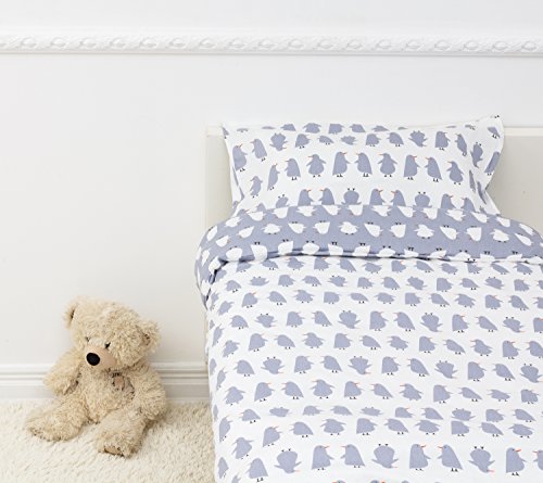 Size: Fitted sheet: 70*130 cm, Top sheet/ duvet cover: 110*130*25 cm, Pillow case: 40*60 cm The set fits standard Cribs and Toddler Beds sold in IKEA, Target, etc, also great on irregular sized mattresses.