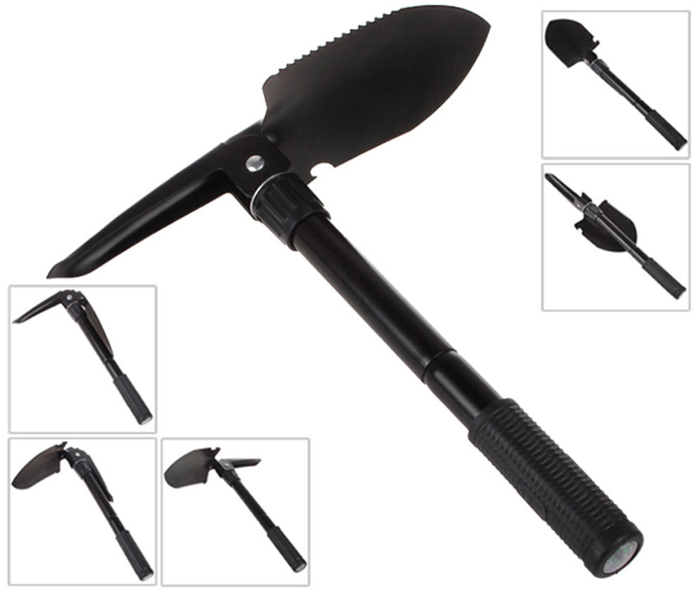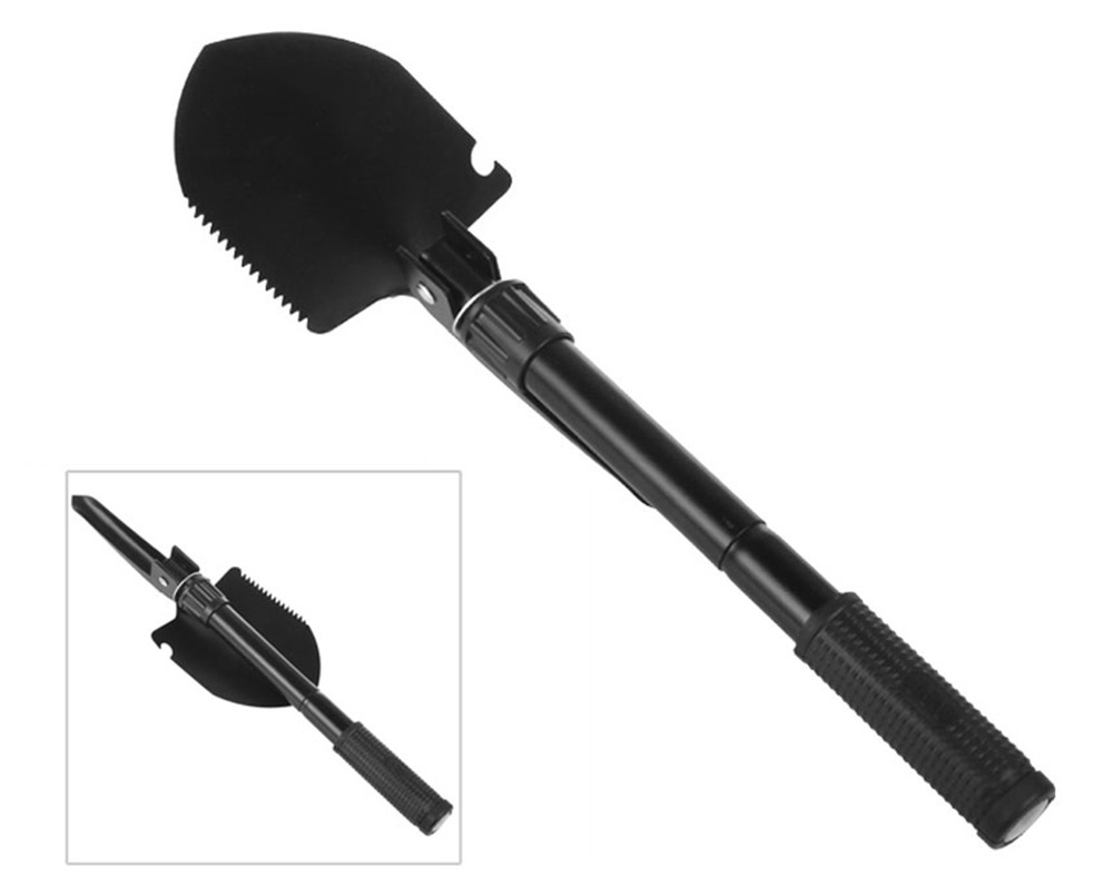 - The folding shovel can be used to dig tires out of dirt if a car becomes stuck.