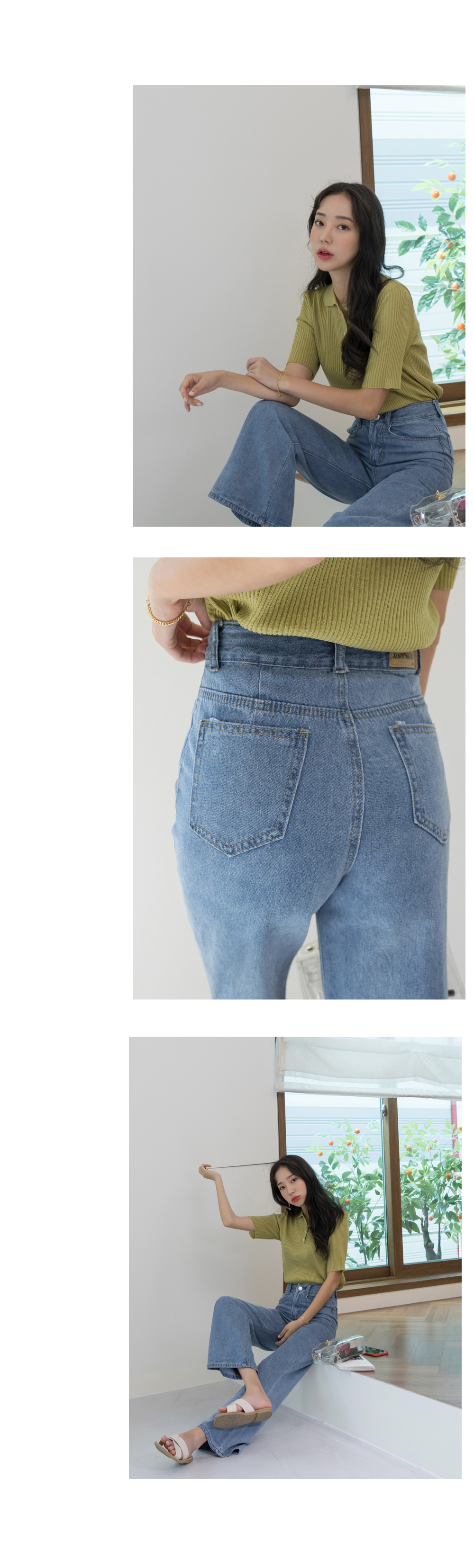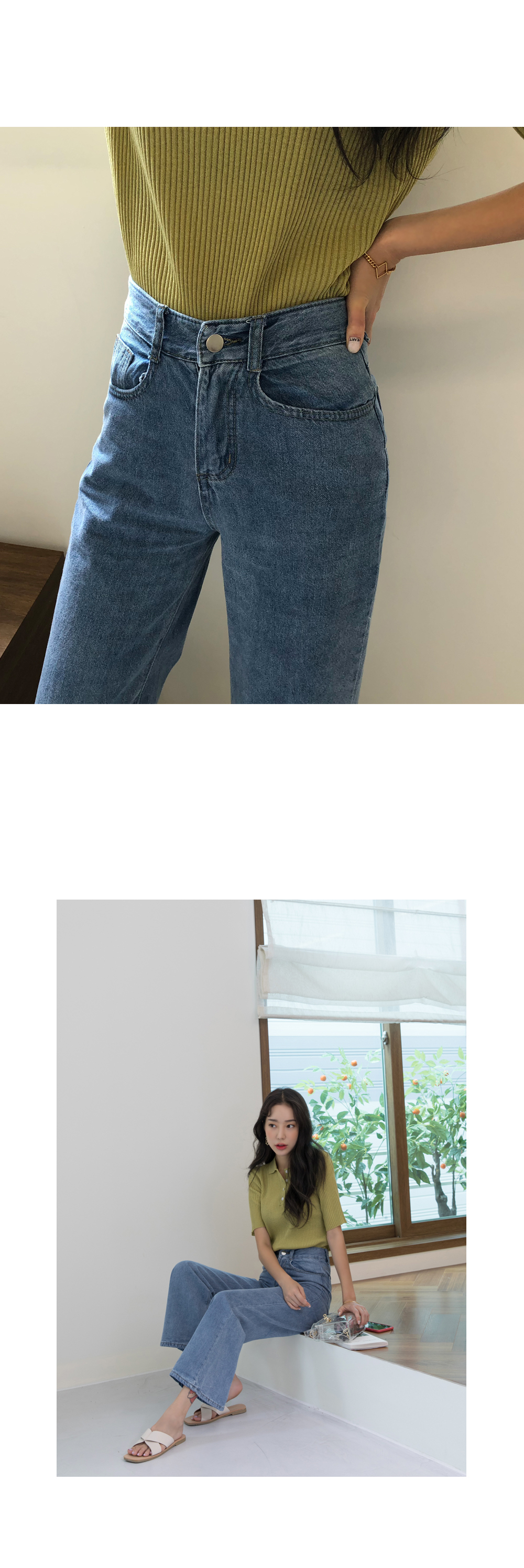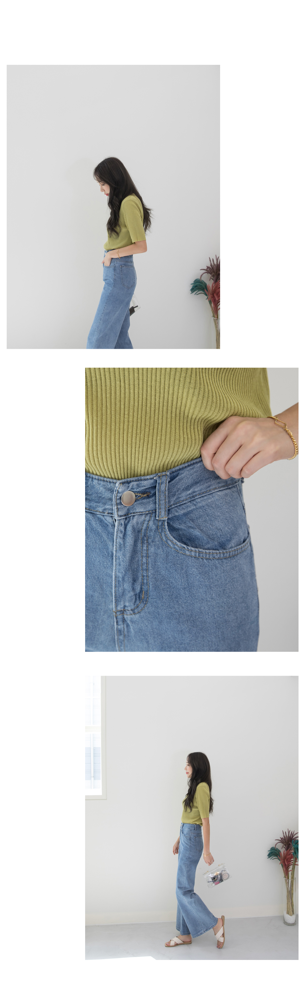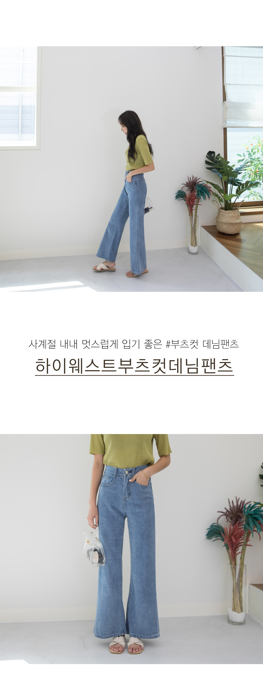 패셔너블해 보이는 하이웨스트 부츠컷 데님팬츠에요~
