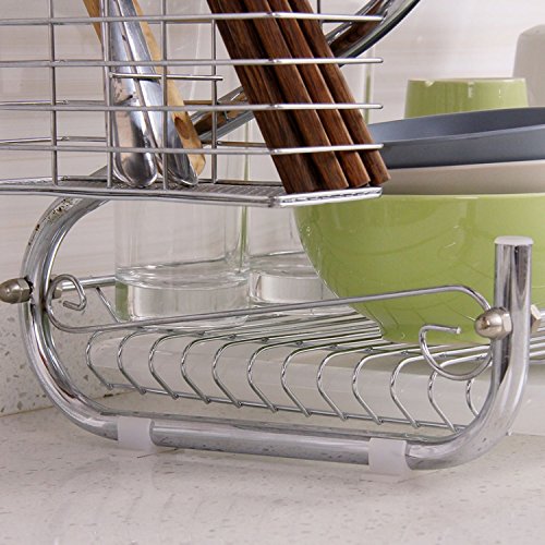 2-Tier Dish Rack and DrainBoard, 20" x15.35 x10.2" Kitchen Chrome Cup Dish Drying Rack Tray Cultery Dish Drainer
