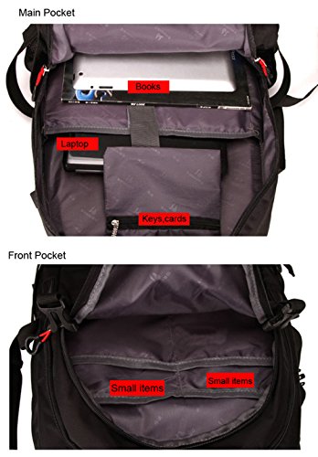 -. Feature : LARGE SPACE - 22.3(H) x13.39(W) x6.69(D) inches It can hold your clothing, books, ipad, water bottles, umbrellas and Lined laptop sleeve holds up to 17 inch laptop, Even meet more travel needs. The pockets can be enough to hold your phone, ipad, keys, documents, money, cups, umbrellas and Laptop-only compartment designed to fit most portable computers up to 16 inches,main compartment can fit 17 inches laptop / HIGH QUALITY MATERIAL - All the stitching and webbing, are used in military specification polyester material, longer straps slider, sleek, durable,coated PVC lining & pockets for water repellency.External material used High-intensity military-style specifications polyester, scratch-resistant, Not easy to fade / COMFORTABLE - Adjustable chest and waist straps to insure its comfortability,Breathable mesh shoulder straps / VERSATILE - Wearing: shoulder, diagonal, backpack. The wearing way is based on your outdoor demand. When camping, biking, hiking, going to school and so on, you can use it as backpack. Besides, the shoulder and diagonal form is a suitable choice for walking a dog, shopping, taking a walk and others. The bag can satisfy you different needs!er / Magictodoor: It's an awesome backpack that you will receive many compliments from your family and friends.