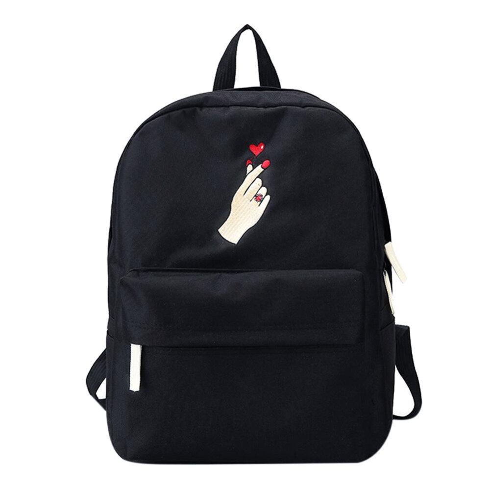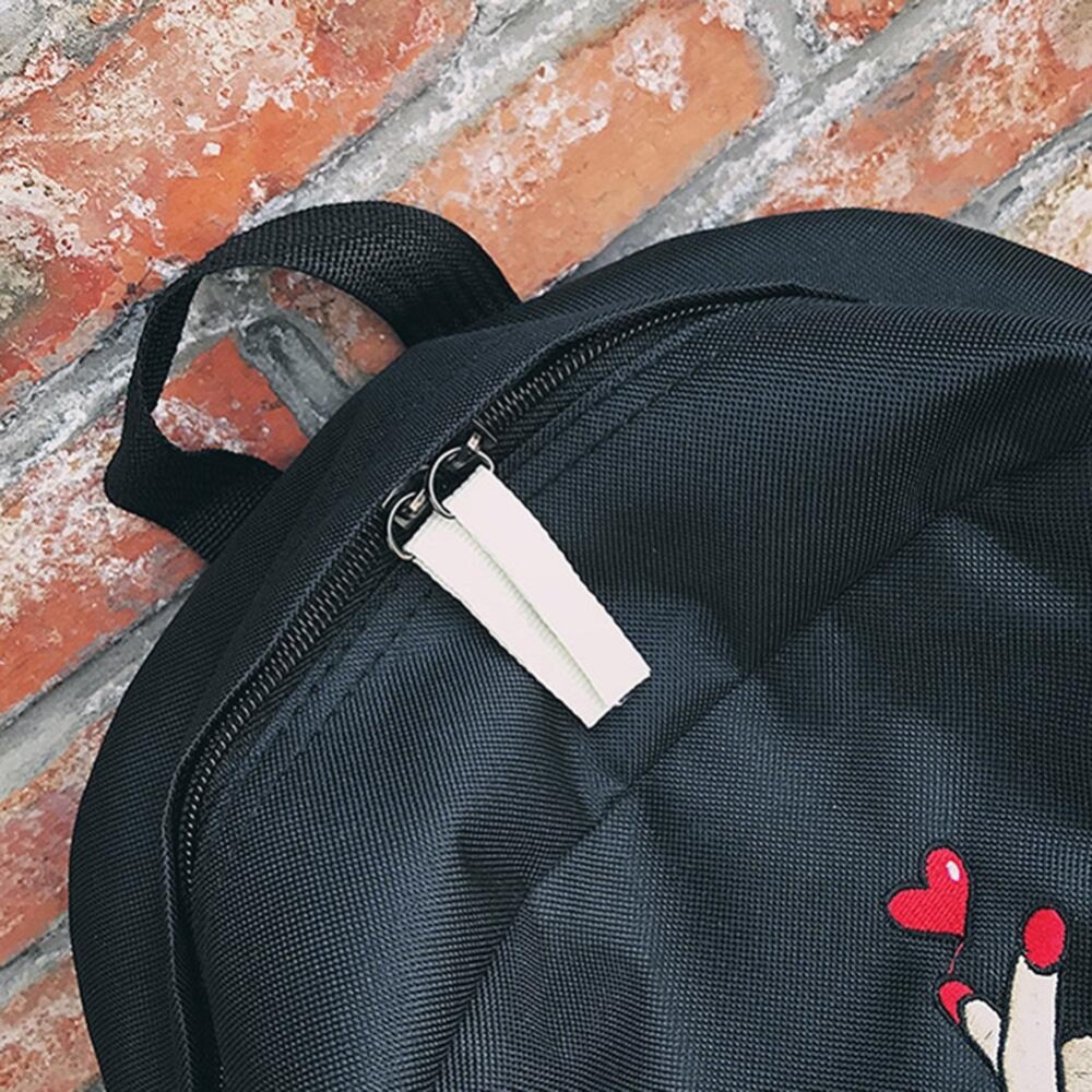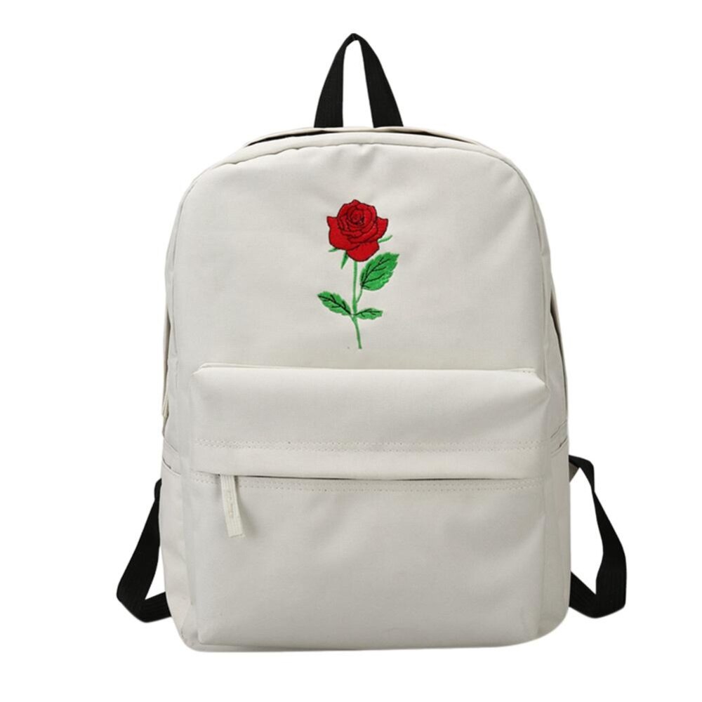 Product details of Unisex Students Embroidered Roses Loves Canvas Backpack CasualSchool Bag(Black)