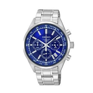 세이코인이 파란 다이얼을 구비했(갖췄) SSB039의 은의 스테인레스강 수정 손목시계