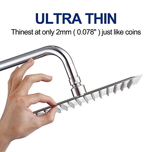 Derpras DPSH12SB 12 Inch Square Rain Shower Head, 304 Stainless Steel,Ultra Thin Powerful High Pressure, Top Spray Bathroom Rainfall Showerhead, Thread Seal Tape Included (Brushed Nickel)