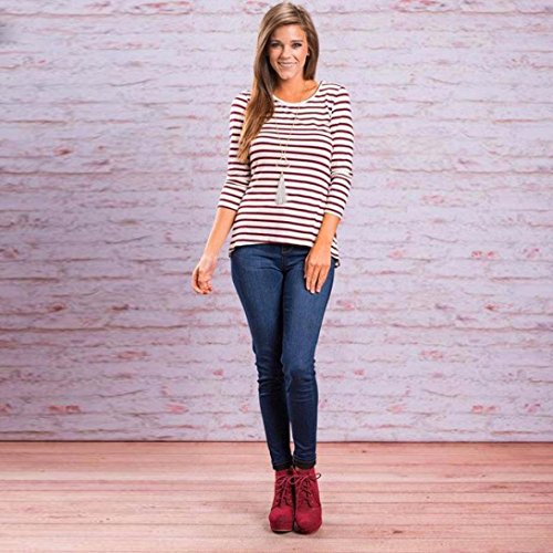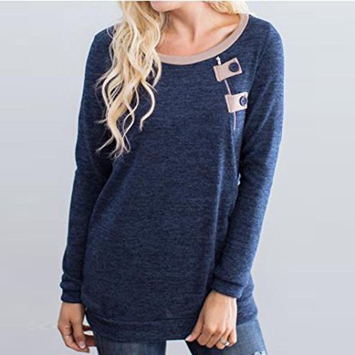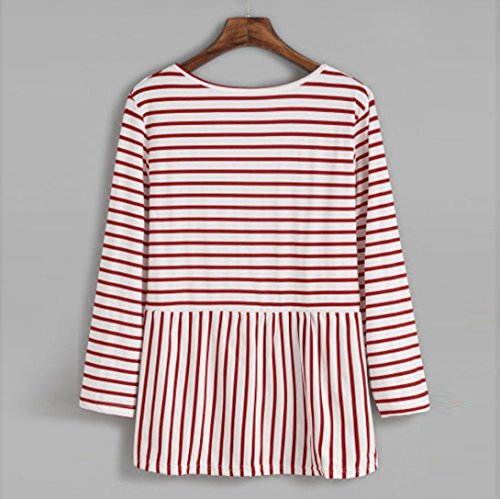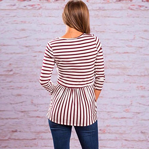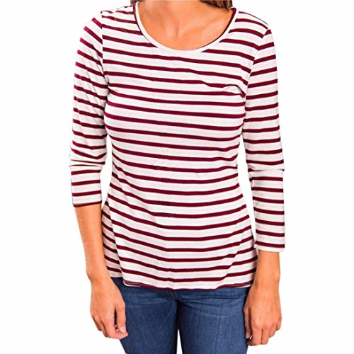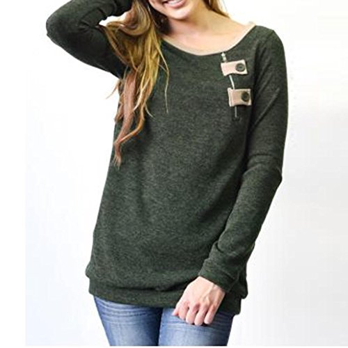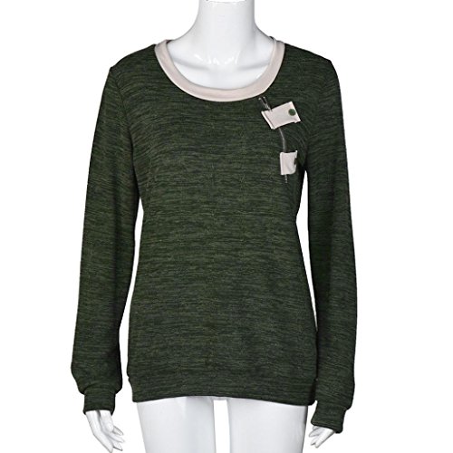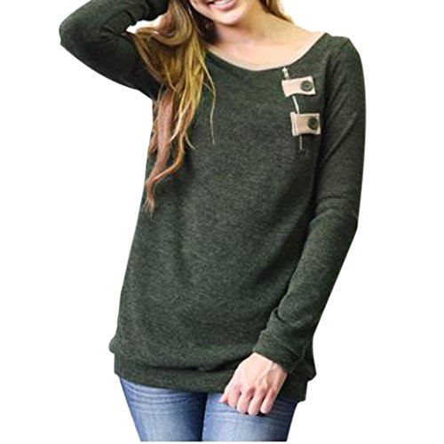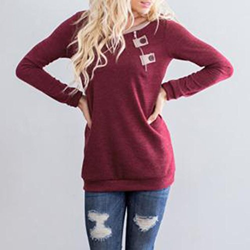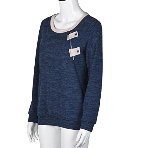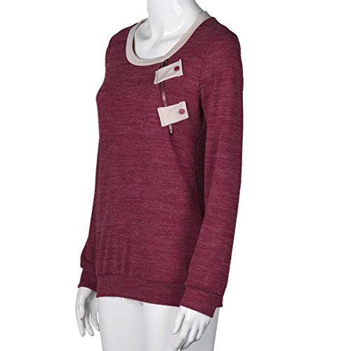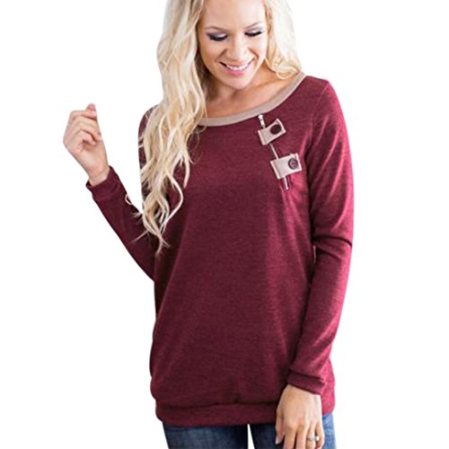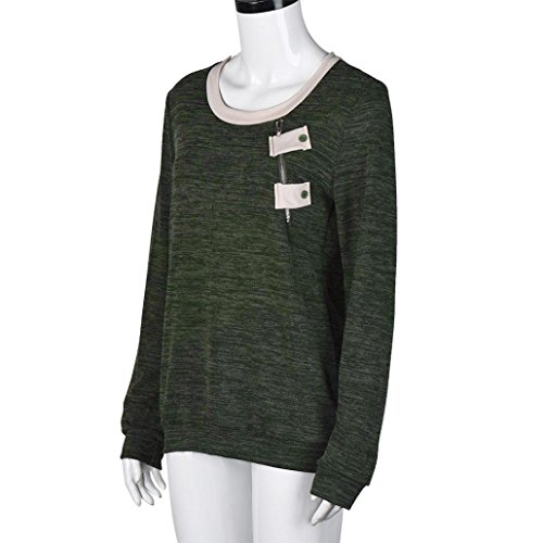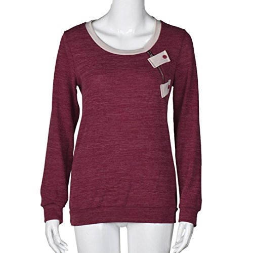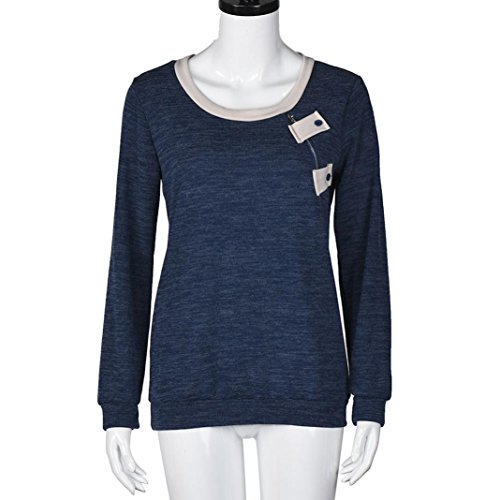 | Sunward(TM) Women Fashion Hedging Round Neck Striped Zipper Button Long-sleeved T-shirt (XLarge... |