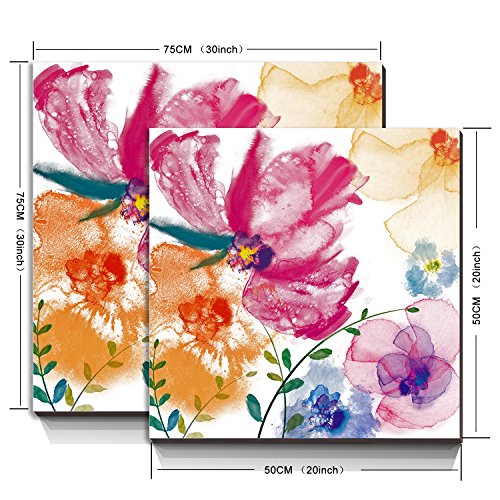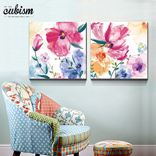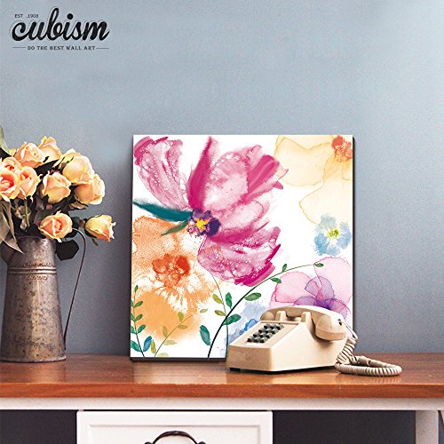 cubism- Giclee Prints Summer Flowers 20x20" Multi Water Color Contemporary Artwork Wall Art Gallery Wrapped - Ready to hang ! SIZE:20x20INCH