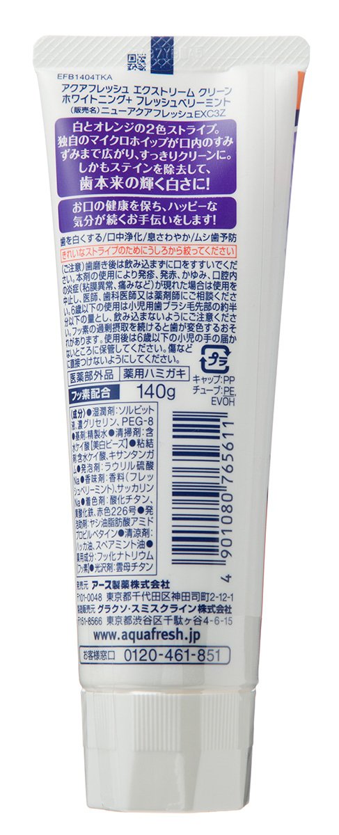 Earth Chemical Aquafresh Extreme Clean Whitening + Fresh Berry Mint 140g