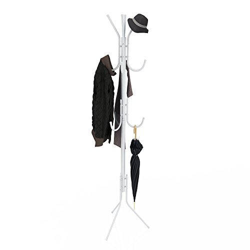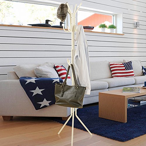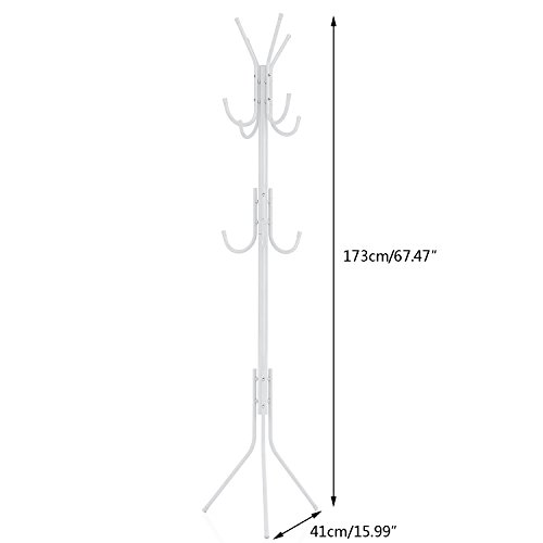 -. Feature : ★Standing coat rack is designed to be sturdy, Simple structure, easy to assemble. / ★11 hooks separated into 3 tiers give you an ample amount of hanging options for any garments or clothes,Jacket Umbrella Handbag Purses Hats ect. / ★Three-legged base design with plastic cap helps protect the floor from getting scratched. / ★Constructed from high quality waterproof stoving varnish metal tubes, anti-rust & durable,the garment rack will offer you long-term and stable organization . / ★Simple structure,and We recommend a Phillips head screwdriver to ensure that all screws are tightly in place.