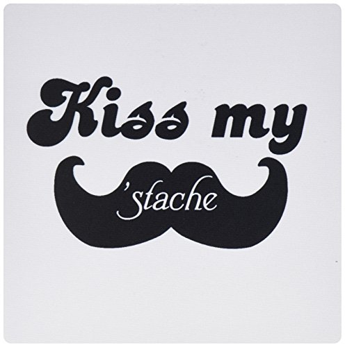 3dRose LLC 8 x 8 x 0.25 Inches Mouse Pad, Funny Kiss My Stache Mustache Humor - Black And White Moustache Fun Wordplay Pun Joke (mp_76618_1)