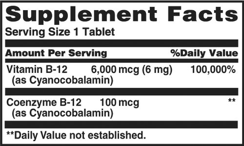 -. Title : Sundown, Sublingual B-12 6000 Mcg Tablets, 30 ct