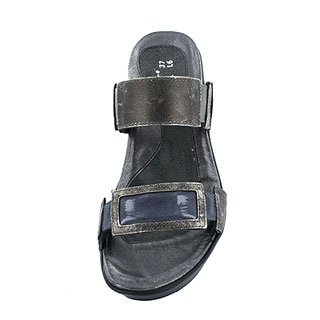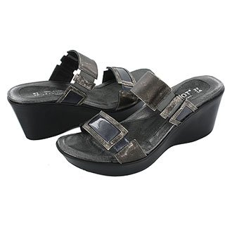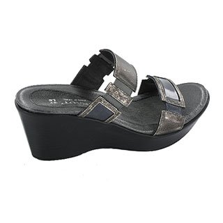 Binding : Apparel Product Description Noat Treasure 38014 Metal Grey Product Information A beautiful leather and patent leather strap with stretchy goring on the vamp strap for added give. Smooth leather footbed provides cushioning support with moisture wicking properties. Flexible polyurethane wedge outsole offers long-lasting wear and amazing traction control. 2 3/4" heel. 1 1/4" platform