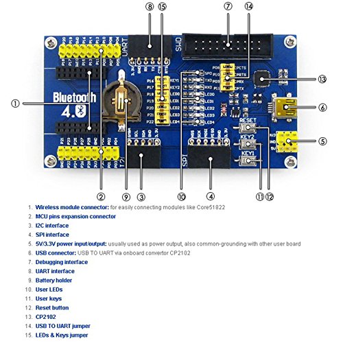 -. Binding : Electronics -. Brand : EleDuino -. EAN : 0710824097857 -. Feature : Onboard battery holder, multi power supplies are available / EDs and user keys, compatible with other official boards, easy to use / All the IOs are accessible for easy expansion / Frequency range: 2.4GHz -. Label : Waveshare -. Manufacturer : Waveshare -. MPN : ewcase07 -. PackageQuantity : 1 -. PartNumber : ewcase07 -. ProductGroup : PC Accessory -. ProductTypeName : NETWORKING_DEVICE -. Publisher : Waveshare -. Studio : Waveshare -. Title : Eleduino BLE4.0 Bluetooth NRF51822 Module 2.4G Wireless Communication Module Mother Board Expansion Development Board Kit for Arduino -. UPC : 710824097857