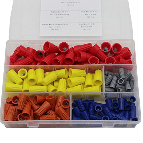 - Contains Various Connectors,Red - Min 2x#14 Max. 2x#10/2x#12 (32pcs),Yellow - Min. 2x#18 Max. 4x#14/1x#18 (32pcs) ,Orange - Min. 1x#18/1x#20 Max. 4x#16/1x#20 (32 pcs),Blue - Min. 2x#22 Max. 3x#16 (32pcs),Grey - Min. 2x#22 Max. 2x#16 (32 pcs)