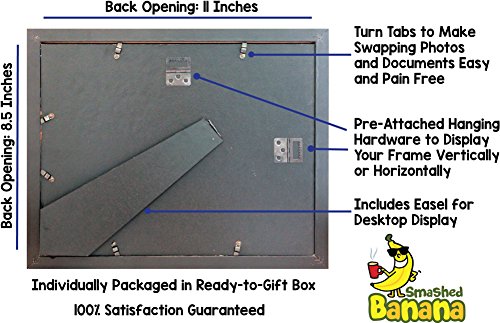 8.5x11 Black Gallery Certificate and Document Frame - Wide Molding - Includes both Attached Hanging Hardware and Desktop Easel - Display Certificates, Documents, a Diploma, or an 8.5 x 11 Inch Photo