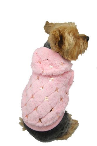 -. Title : Anima Pink Fluff Sequins Hoodie for Pets