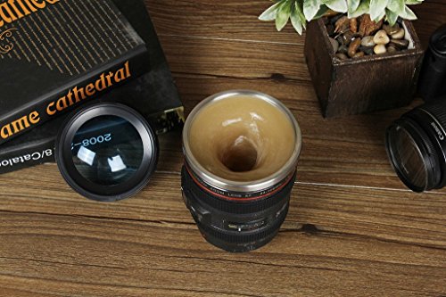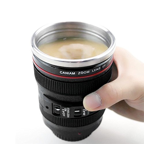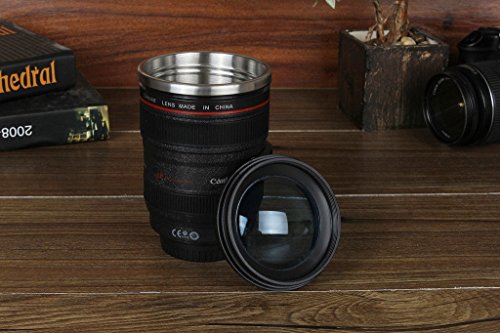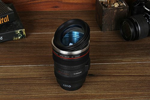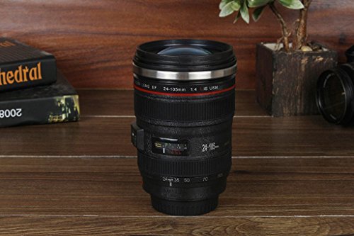 Happy Hours 300ML Camera Thermo Lens Travel & Novelty Mug Stainless Steel Insulated Self Stirring For Coffee and Refreshments Modeling Canon 24-105 Lens with Drinking Lid