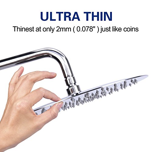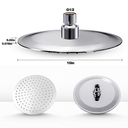 Derpras DPSH10RC 10 Inch Round Rain Shower Head, 304 Stainless Steel,Ultra Thin Powerful High Pressure, Top Spray Bathroom Rainfall Showerhead, Thread Seal Tape Included (Finish Chrome)