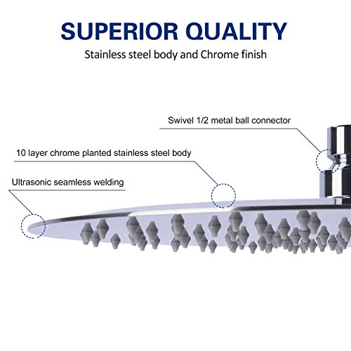 - What you get: 10" shower head, thread seal tape, additional 5 replaceable nozzles,3 years quality warranty.