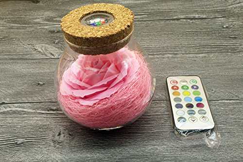 Gift Prod Rose Wish Bottle with Remote Control Handmade Preserved Rose Never Withered Roses Flower in Glass Dome, Gift for Valentine's Day Anniversary Birthday, with LED 7 Colors Light (Style 6)