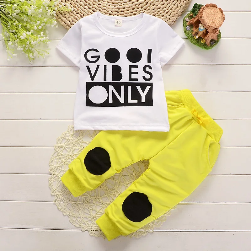ファッション子供の純粋な綿の服衣装赤ちゃん男の子女の子tシャツパンツ2ピース/セットジャージキッズ夏幼児ロンパース服セット