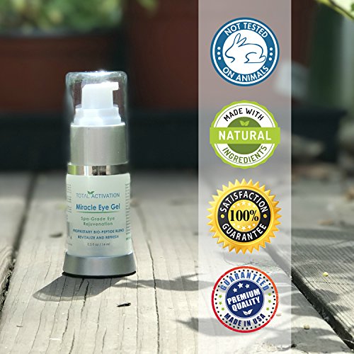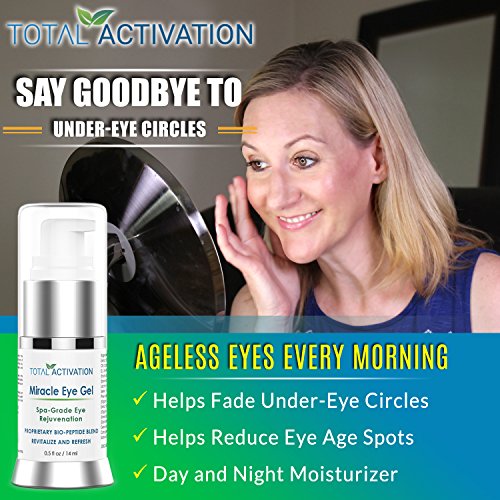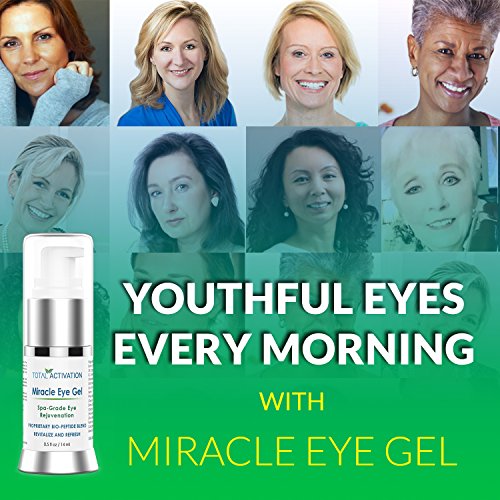 -. Feature : YOUTHFUL EYES, EACH AND EVERY MORNING - Your eyes will no longer give away your age thanks to the power of our youth restoring Miracle Eye Gel. Use each morning to firm the delicate skin around your eyes. / ACTIVATES EYES TO REDUCE THE APPEARANCE OF WRINKLES - Effectively diminishes the appearance of crows feet, lines, and wrinkles, rejuvenating skin and hydrating to a youthful firmness. / INCREASES CIRCULATION TO FIGHT DARK CIRCLES - The cooling power of Miracle Eye Gel immediately improves under eye circulation. As light shines through the translucent skin under your eyes, youll see and feel natural radiance instead of dark circles. / NATURAL PEPTIDES TO NOURISH SKIN - Give your skin the clinical strength blend of Peptides and Botanicals it craves, organically and naturally! Dont resort to potentially harmful chemical treatments. Trust our pure, plant-based approach at Total Activation. / EVERYONE WILL NOTICE - Our fragrance-free eye gel is specially formulated to work around the entire eye area, to help smooth fine lines and visibly reduce the appearance of dark circles and puffiness. The smooth, silky texture will help you feel young, vibrant and healthy, bringing out the best version of you, starting with your eyes. Expect the skin surrounding your eyes to look firm, smooth and vibrant, as everyone around you begins to take notice.