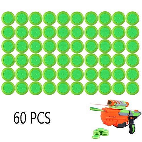 -. Feature : ✔Material: EVA, non-toxic, safe and reusable, soft. / ✔Size: 3.9×3.9×1cm/1.5''×1.5''×0.4''. Please make sure your gun are the same size with these cartridges before you order. / ✔Quantity: 60 PCS as a set, green color. The best gift for nerf blaster toy gun player, kids or yourself. / ✔High quality refills disc bullets, never will run out off ammunition again and let you dominate the battlefield. / ✔Compatible with any Nerf Fusefire, Zombie Strike Ricochet Blaster, Vortex Revonix 360 Blaster, Vortex Pyragon Blaster, Vortex Nitron, Vortex Vigilon Blaster, Zombie Strike Fusefire Blaster, Lumitron, Proton, Vortex Diatron Blaster, Zombie Strike Doominator Blaster, Vortex Vigilon Blaster, Vortex PRAXIS Blaster, Ammo Belt.