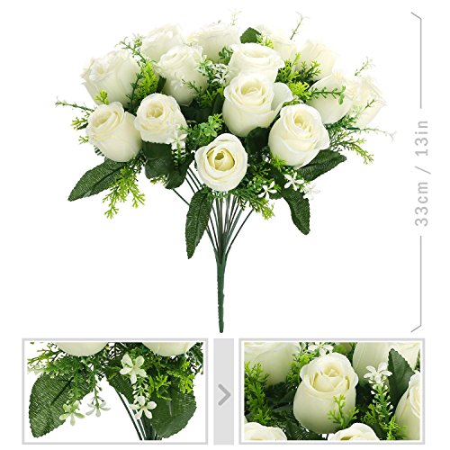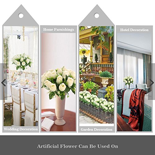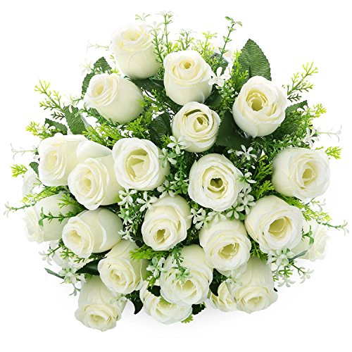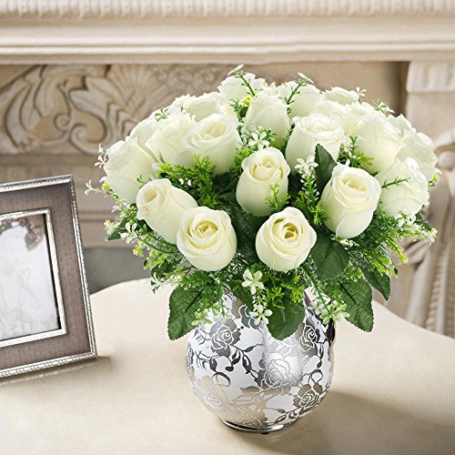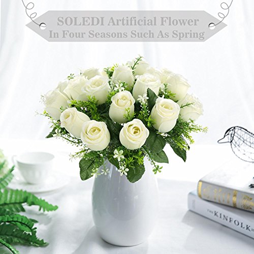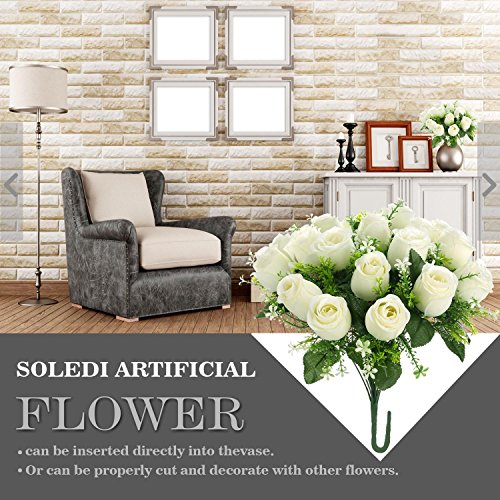 Silk Rose Bouquet White 18 heads SOLEDI Artificial Fake Flower Bunch Bridal Bouquet Wedding Living Room Table Home Garden Decoration